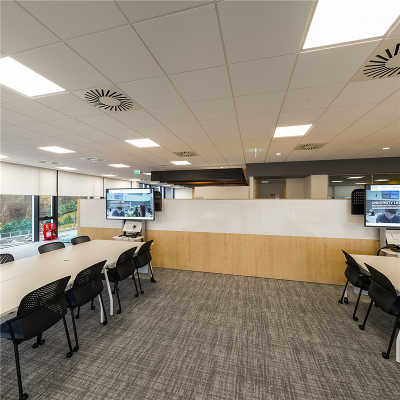 拉纳克郡校区体现了苏格兰和整个英国高等教育部门对学习和教学方式的转变,即为学生提供高科技,灵活和协作的空间,以强大而有效的现代化方式提供教学,并提供以学生为中心,个性化,独特的学习和教学体验。