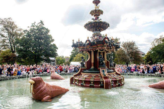 Paisley’s Grand Fountain is considered by Historic Environment Scotland (HES) to be the best example of a Scottish made cast iron fountain in the country. Standing as the centrepiece of Fountain Gardens, the 10m fountain’s unique design includes herons, walruses, cherubs and dolphins.